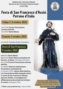 Il 4 ottobre 2025, nel giorno della Festa di S. Francesco d’Assisi, Patrono d’Italia, Mons. Vescovo ha presieduto la S. Messa presso la Basilica Minore S. Francesco d’Assisi – Santuario S. Francesco Antonio Fasani, a Lucera.