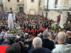 Nel pomeriggio del 5 aprile, solennità di Pasqua, Mons. Vescovo ha partecipato alla processione del “Bacio” e ha presieduto il solenne pontificale nella ConCattedrale di Troia.