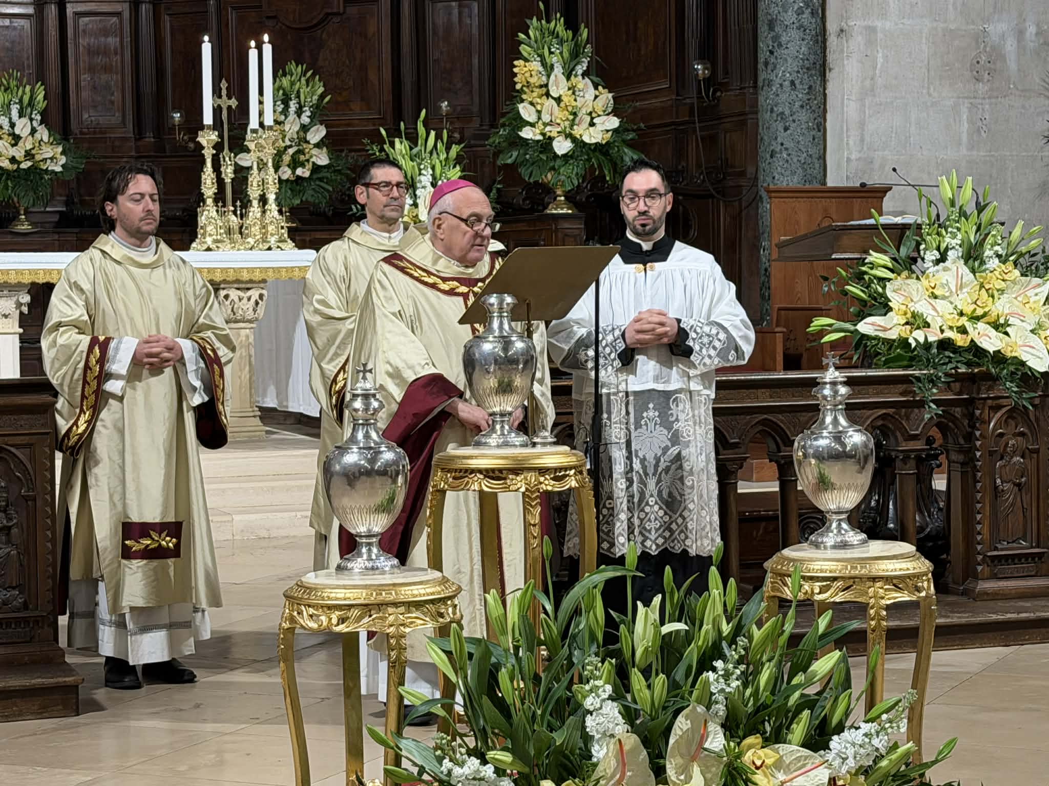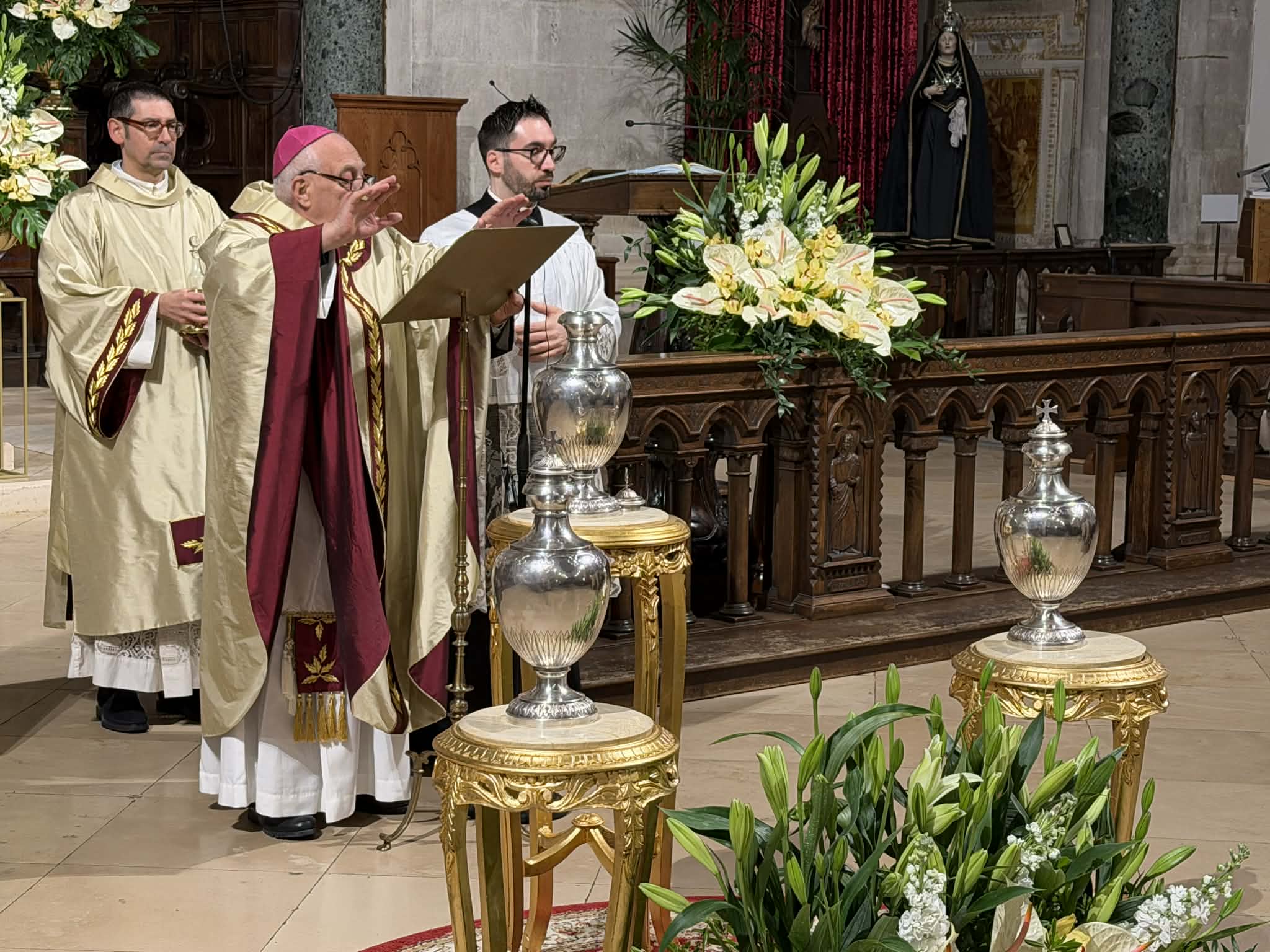 Nel pomeriggio di mercoledì 1° aprile 2026, Mons. Vescovo ha presieduto in Cattedrale la S. Messa del Crisma, concelebrata insieme ai presbiteri diocesani e religiosi operanti in diocesi, alla presenza delle principali rappresentanze della comunità cristiana.