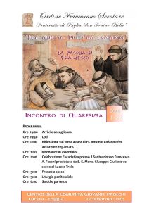 Si è svolto a Lucera l’Incontro di Quaresima dell’Ordine Francescano Secolare della Fraternità di Puglia “don Tonino Bello”, presso il Centro della Comunità Giovanni Paolo II.
