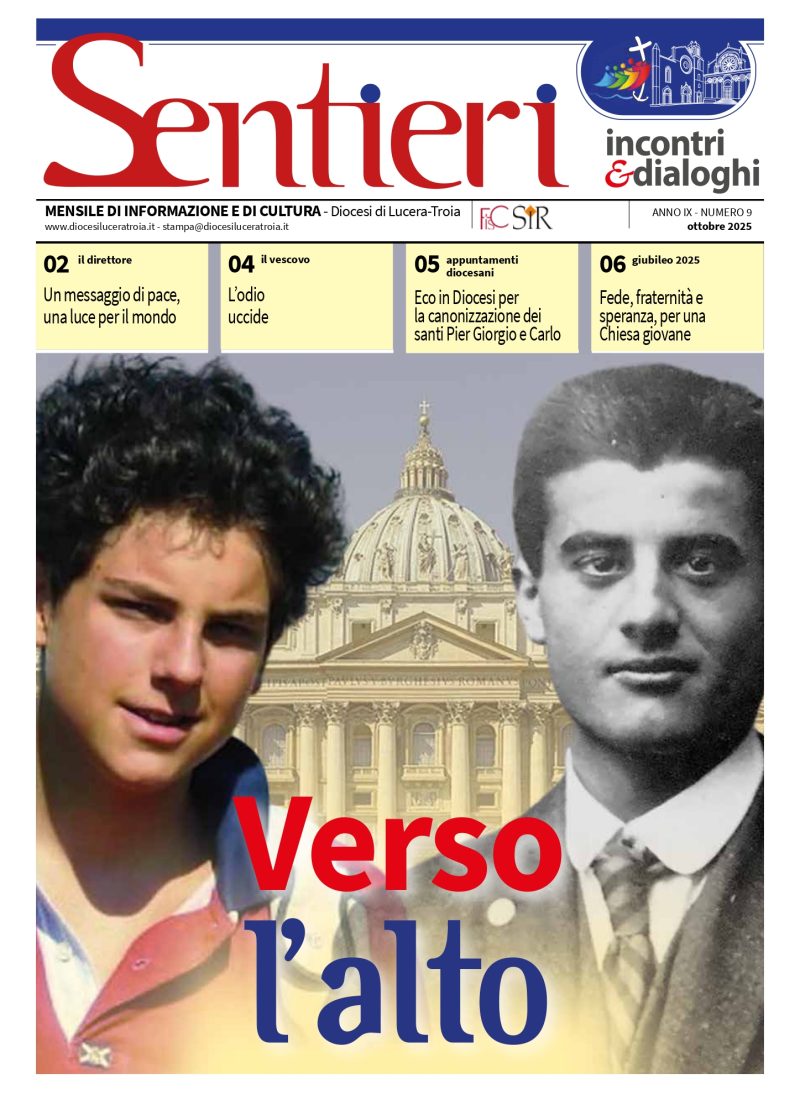 1 Ottobre 2025 piergiorgioaquilino Sentieri - Incontri e Dialoghi n.9 Ottobre 2025 Verso l’alto Scarica in formato pdf il mensile diocesano Sentieri del mese di ottobre 2025. FacebookTwitterGoogle+LinkedinPrintemail Sentieri ottobre 2025